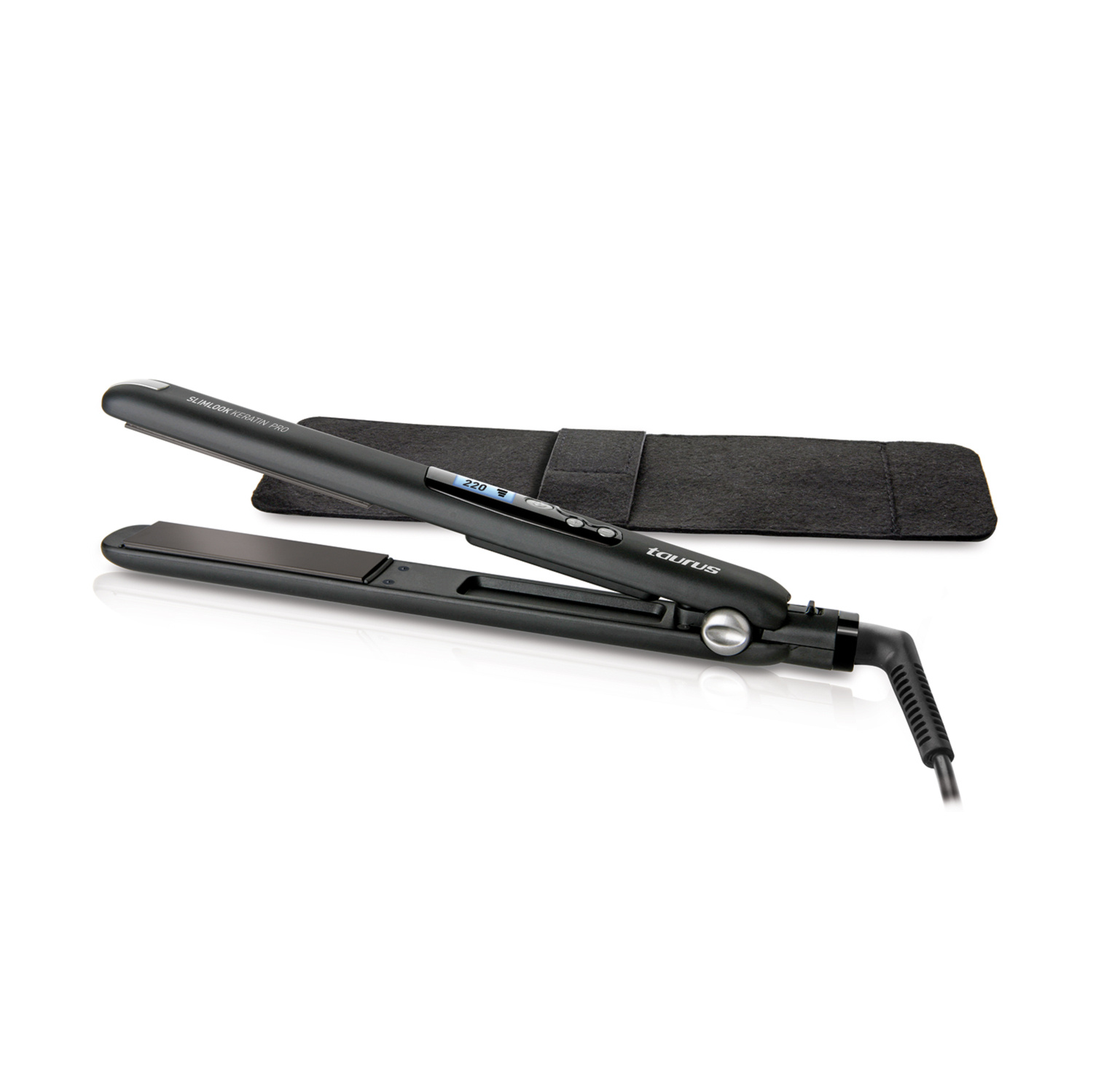 Taurus Plancha de pelo SKU 901180000 Slimlook Keratine Pro Slimlook Keratine Pro Consigue unos resultados profesionales gracias a sus placas de cerámica, turmalina y keratina. Tu pelo libre de encrespamiento y con un extra de suavidad con Slimlook Keratine Pro. Deja atrás los mechones rebeldes y luce una melena llena de vida. Lista en 30 segundos para un planchado rápido y eficaz. Bolsa térmica. PLACAS EXTRA LARGAS. Para unos resultados más rápidos, Slimlook Keratin Pro dispone de unas placas extra largas. Conseguirás el resultado deseado con menos pasadas gracias a su extra longitud PLACAS DE CERÁMICA. Este material distribuye mejor el calor y permite que el pelo se deslice suavemente evitando la fricción. Además, las placas de cerámica aportan suavidad y brillo a la melena PLACAS FLOTANTES: Las placas de Slimlook Keratin Pro, a parte de estar hechas con cerámica, son basculantes, contienen turmalina y están bañadas con queratina. Triple acción para tu pelo DISEÑO DUAL. Slimlook Keratine Pro está pensada y diseñada para una doble función: alisa y riza. Con ella podrás obtener alisados perfectos y duraderos o ondulaciones libres de encrespamiento CONTROL DE LA TEMPERATURA. Cada pelo y peinado necesita su temperatura adecuada. Por eso, la plancha de pelo Slimlook Keratine Pro te ofrece desde 100º a 220º. Controlala a través de su pantalla LCD Negro Material Cerámica 50 W Longitud del cable 186 cm 50 W