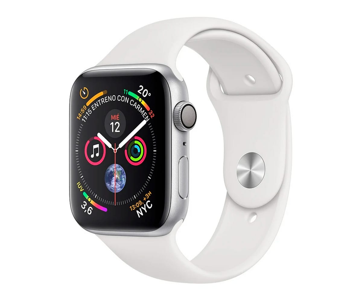 SMARTWATCH REACONDICIONADO APPLE WATCH SERIES 4 EN COLOR PLATEADO CON ESFERA CUADRADA, PANTALLA RETINA OLED 368 X 448 PIXELES, CONECTIVIDAD GPS, WIFI 4 Y BLUETOOTH 5.0, GIROSCOPIO, SENSOR DE LUZ AMBIENTAL, SENSOR CARDIACO, MODOS DEPORTIVOS, BATERÍA CON UNA DURACIÓN MEDIA DE 18 HORAS.
