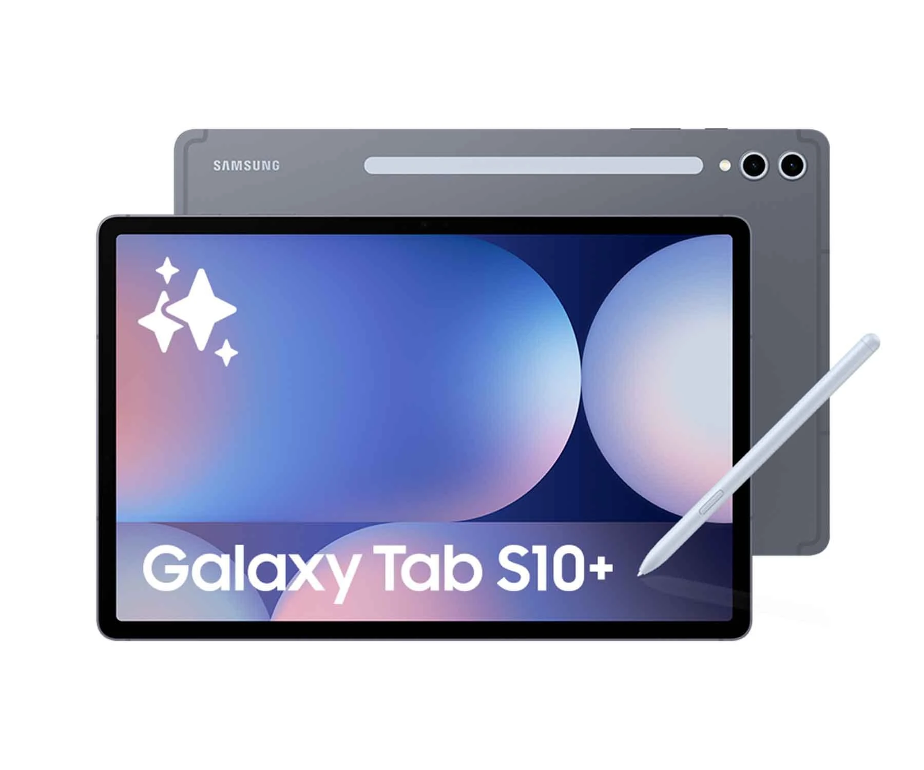 Tablets SM-X820NZAPEUB Tablet samsung galaxy tab s10+ wifi 12.4 pulgadas 12 - 512gb gris ``` - PROCESADOR Velocidad CPU 3.4GHz, 2.8GHz, 2GHz Tipo CPU Octa-Core - PANTALLA Tamaño (Pantalla principal) 12.4" (315.0mm) Resolución (Pantalla principal) 2800 x 1752 (WQXGA+) Tecnología (Pantalla principal) Dynamic AMOLED 2X Número de colores (Pantalla principal) 16M - S PEN Sí (Gestos/Control Remoto) - CÁMARA Cámara principal - Resolución 13.0 MP + 8.0 MP Cámara principal - Autofocus Sí Cámara principal - Flash Sí Cámara frontal - Resolución 12.0 MP Resolución de grabación de vídeo UHD 4K (3840 x 2160) @30fps - ALMACENAMIENTO/MEMORIA Memoria (GB) 12 Almacenamiento (GB) 512 Almacenamiento disponible (GB) 483.3 Soporte de almacenamiento externo MicroSD (hasta 1.5TB) - CONECTIVIDAD Versión USB USB 3.2 Gen 1 Localización GPS, Glonass, Beidou, Galileo, QZSS Auriculares USB Type-C MHL No Wi-Fi 802.11a/b/g/n/ac/ax 2.4GHz+5GHz+6GHz, HE160, MIMO, 1024-QAM Wi-Fi Direct Sí Versión Bluetooth Bluetooth v5.3 NFC No Perfiles Bluetooth A2DP, AVRCP, DI, HID, HOGP, OPP, PAN, PBP, TMAP PC Sync. Smart Switch (PC version) - SISTEMA OPERATIVO Android - INFORMACIÓN GENERAL Color Gray Formato Tablet - SENSORES Acelerómetro, Sensor de huella dactilar, Giroscopio, Geomagnético, Hall, Sensor Luz RGB - ESPECIFICACIONES FÍSICAS Dimensiones (AlxAnxProf, mm) 185.4 x 285.4 x 5.6 Peso (g) 571 - BATERÍA Tiempo de uso de Internet (Wi-Fi) (Horas) Hasta 11 Tiempo de reproducción de Vídeo (Horas, Wireless) Hasta 16 Capacidad de batería (mAh, típico) 10090 Extraíble No - AUDIO Y VIDEO Formatos de reproducción de Vídeo MP4, M4V, 3GP, 3G2, AVI, FLV, MKV, WEBM Resolución de reproducción de Vídeo UHD 8K (7680 x 4320) @60fps Formatos de reproducción de Audio MP3, M4A, 3GA, AAC, OGG, OGA, WAV, AMR, AWB, FLAC, MID, MIDI, XMF, MXMF, IMY, RTTTL, RTX, OTA - SERVICIOS Y APLICACIONES Compatibilidad Gear Galaxy Buds3 Pro, Galaxy Buds2 Pro, Galaxy Buds Pro, Galaxy Buds Live, Galaxy Buds+, Galaxy Buds3, Galaxy Buds2, Galaxy Buds, Galaxy Buds FE SmartThings Support Sí Mobile TV No ```